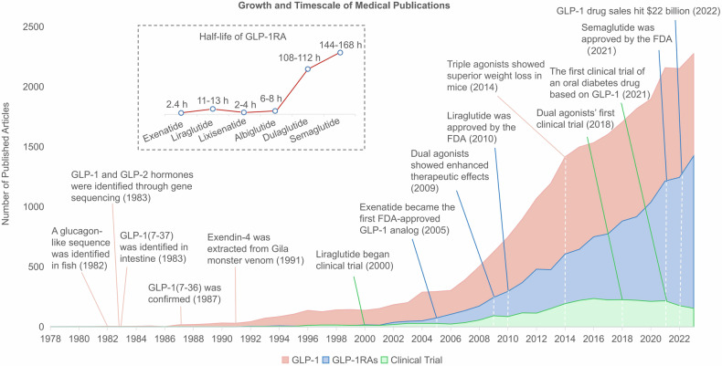 The glucagon-like peptide-1 (GLP-1) receptor, known as GLP-1R, is a vital component of the G protein-coupled receptor (GPCR) family and is found primarily on the surfaces of various cell types within the human body. This receptor specifically interacts with GLP-1, a key hormone that plays an integral role in regulating blood glucose levels, lipid metabolism, and several other crucial biological functions. In recent years, GLP-1 medications have become a focal point in the medical community due to their innovative treatment mechanisms, significant therapeutic efficacy, and broad development prospects. This article thoroughly traces the developmental milestones of GLP-1 drugs, from their initial discovery to their clinical application, detailing the evolution of diverse GLP-1 medications along with their distinct pharmacological properties. Additionally, this paper explores the potential applications of GLP-1 receptor agonists (GLP-1RAs) in fields such as neuroprotection, anti-infection measures, the reduction of various types of inflammation, and the enhancement of cardiovascular function. It provides an in-depth assessment of the effectiveness of GLP-1RAs across multiple body systems-including the nervous, cardiovascular, musculoskeletal, and digestive systems. This includes integrating the latest clinical trial data and delving into potential signaling pathways and pharmacological mechanisms. The primary goal of this article is to emphasize the extensive benefits of using GLP-1RAs in treating a broad spectrum of diseases, such as obesity, cardiovascular diseases, non-alcoholic fatty liver disease (NAFLD), neurodegenerative diseases, musculoskeletal inflammation, and various forms of cancer. The ongoing development of new indications for GLP-1 drugs offers promising prospects for further expanding therapeutic interventions, showcasing their significant potential in the medical field.