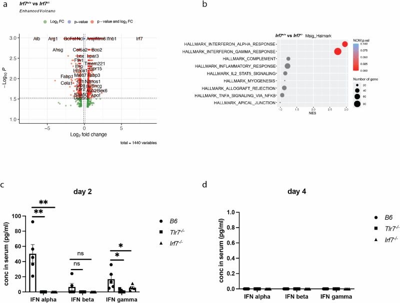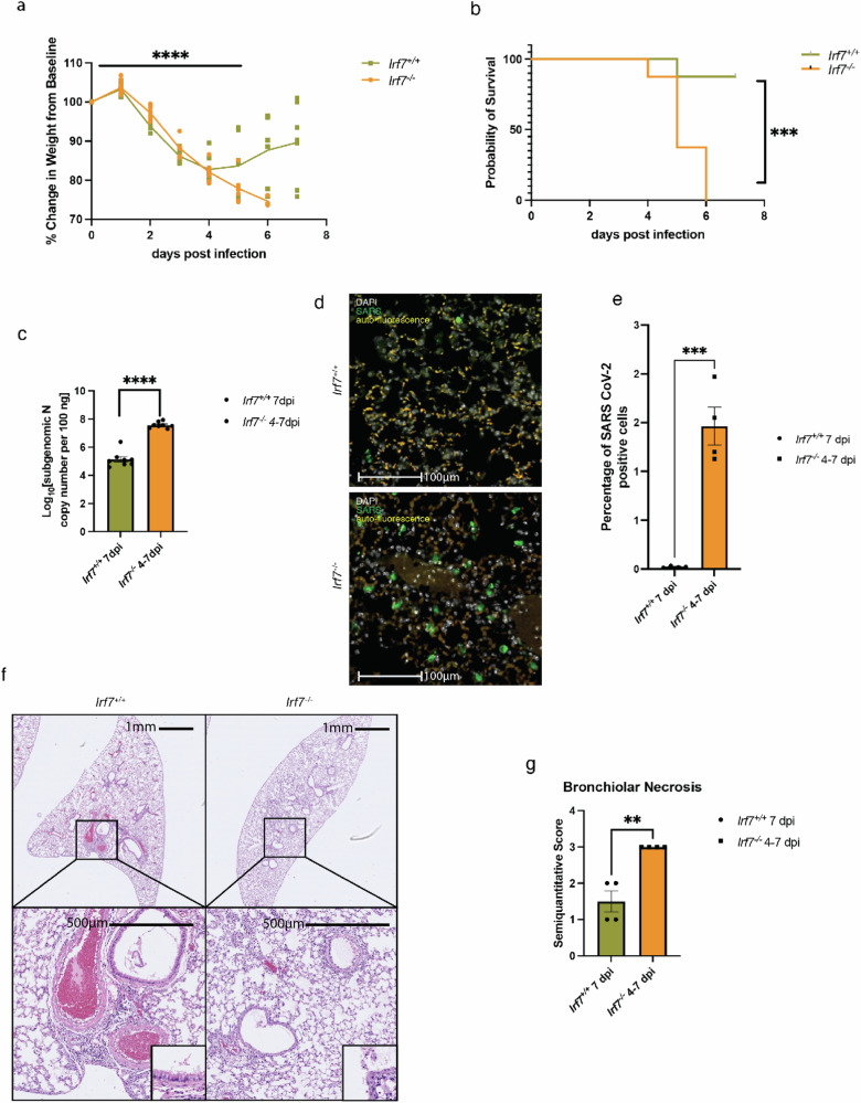Deficiency of Tlr7 and Irf7 in mice increases the severity of COVID-19 through the reduced interferon production