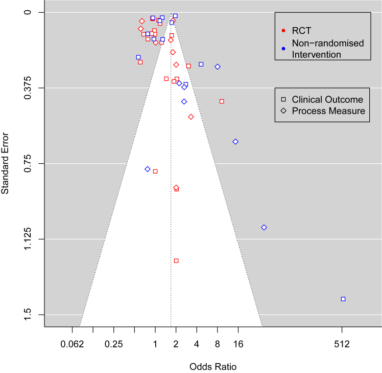 Interpretation: Most CDSS evaluations showed improvements in outcomes, but there was heterogeneity in all aspects of design and evaluation of systems. CDSS are increasingly important in delivering healthcare, and Electronic Health Records and mHealth will increase their availability, but traditional epidemiological methods may be limited in guiding design and demonstrating effectiveness due to rapid CDSS development lifecycles and the complex systems in which they are embedded. Development methods that are attentive to context, such as Human Centred Design, will help to meet this need.