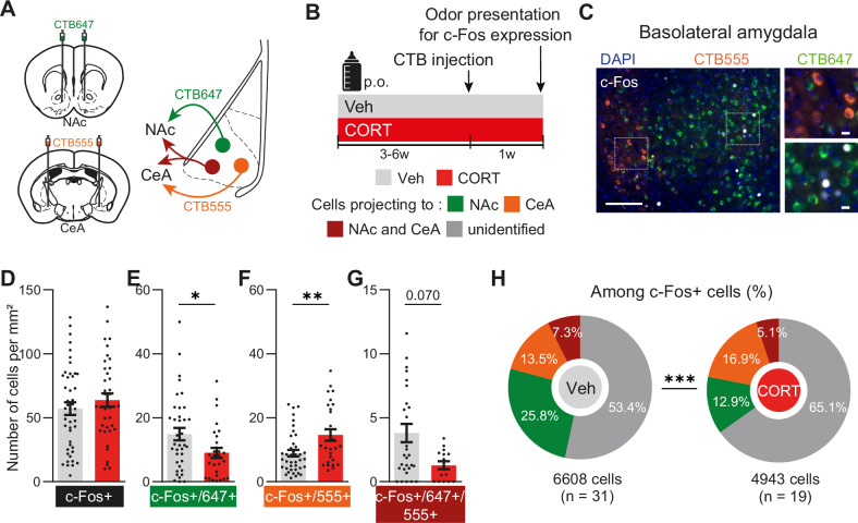 Negative bias is an essential characteristic of depressive episodes leading patients to attribute more negative valence to environmental cues. This negative bias affects all levels of information processing including emotional response, attention and memory, leading to the development and maintenance of depressive symptoms. In this context, pleasant stimuli become less attractive and unpleasant ones more aversive, yet the related neural circuits underlying this bias remain largely unknown. By studying a mice model for depression chronically receiving corticosterone (CORT), we showed a negative bias in valence attribution to olfactory stimuli that responds to antidepressant drug. This result paralleled the alterations in odor value assignment we observed in bipolar depressed patients. Given the crucial role of amygdala in valence coding and its strong link with depression, we hypothesized that basolateral amygdala (BLA) circuits alterations might support negative shift associated with depressive states. Contrary to humans, where limits in spatial resolution of imaging tools impair easy amygdala segmentation, recently unravelled specific BLA circuits implicated in negative and positive valence attribution could be studied in mice. Combining CTB and rabies-based tracing with ex vivo measurements of neuronal activity, we demonstrated that negative valence bias is supported by disrupted activity of specific BLA circuits during depressive states. Chronic CORT administration induced decreased recruitment of BLA-to-NAc neurons preferentially involved in positive valence encoding, while increasing recruitment of BLA-to-CeA neurons preferentially involved in negative valence encoding. Importantly, this dysfunction was dampened by chemogenetic hyperactivation of BLA-to-NAc neurons. Moreover, altered BLA activity correlated with durable presynaptic connectivity changes coming from the paraventricular nucleus of the thalamus, recently demonstrated as orchestrating valence assignment in the amygdala. Together, our findings suggest that specific BLA circuits alterations might support negative bias in depressive states and provide new avenues for translational research to understand the mechanisms underlying depression and treatment efficacy.