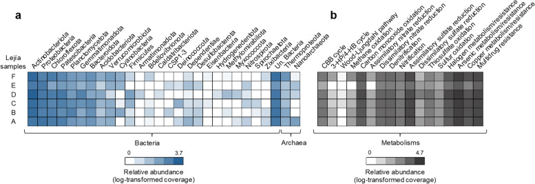 Results: The mineralogy and geochemistry of the terrace profile revealed large water level fluctuations in the lake, scarcity of organic carbon, and high concentration of SO42--S, Na, Cl and Mg. Lipid biomarker analysis indicated the presence of aquatic/terrestrial plant remnants preserved in the ancient sediments, and genome-resolved metagenomics unveiled a diverse prokaryotic community with still active microorganisms based on in silico growth predictions. We reconstructed 591 bacterial and archaeal metagenome-assembled genomes (MAGs), of which 98.8% belonged to previously unreported species. The most abundant and widespread metabolisms among MAGs were the reduction and oxidation of S, N, As, and halogenated compounds, as well as aerobic CO oxidation, possibly as a key metabolic trait in the organic carbon-depleted sediments. The broad redox and CO2 fixation pathways among phylogenetically distant bacteria and archaea extended the knowledge of metabolic capacities to previously unknown taxa. For instance, we identified genomic potential for dissimilatory sulfate reduction in Bacteroidota and α- and γ-Proteobacteria, predicted an enzyme for ammonia oxidation in a novel Actinobacteriota, and predicted enzymes of the Calvin-Benson-Bassham cycle in Planctomycetota, Gemmatimonadota, and Nanoarchaeota.