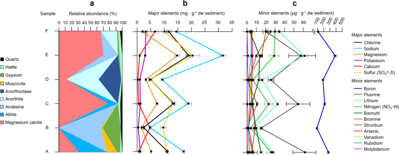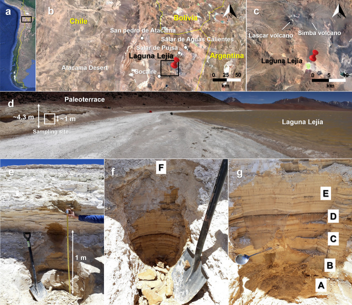 Background: The Andean Altiplano hosts a repertoire of high-altitude lakes with harsh conditions for life. These lakes are undergoing a process of desiccation caused by the current climate, leaving terraces exposed to extreme atmospheric conditions and serving as analogs to Martian paleolake basins. Microbiomes in Altiplano lake terraces have been poorly studied, enclosing uncultured lineages and a great opportunity to understand environmental adaptation and the limits of life on Earth. Here we examine the microbial diversity and function in ancient sediments (10.3-11 kyr BP (before present)) from a terrace profile of Laguna Lejía, a sulfur- and metal/metalloid-rich saline lake in the Chilean Altiplano. We also evaluate the physical and chemical changes of the lake over time by studying the mineralogy and geochemistry of the terrace profile.