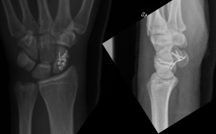 Conclusion: The plate and screws system is a viable and appropriate method of osteosynthesis in the treatment of unstable and comminuted recent fractures occurring in the middle third of the carpal scaphoid.