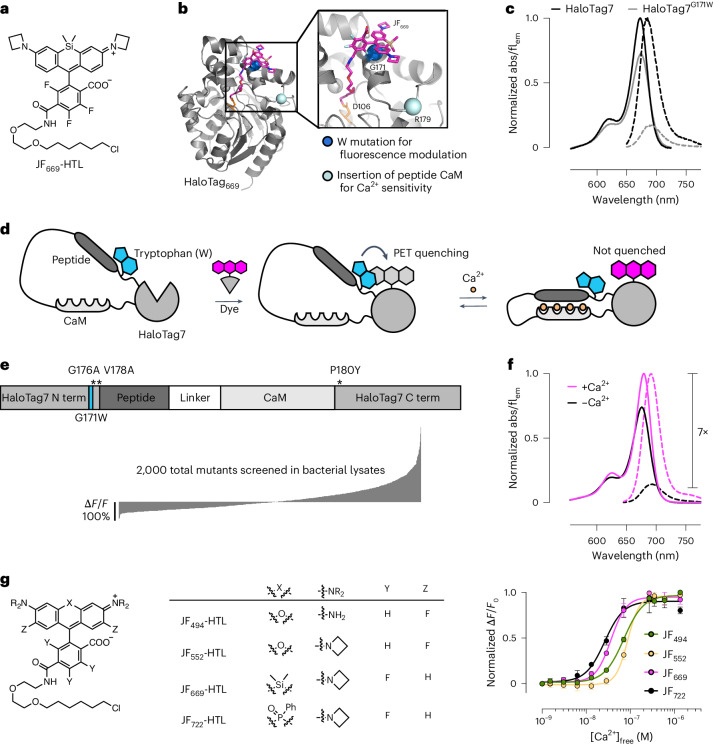 H.F. and E.R.S. have filed patent applications on tryptophan-containing chemigenetic fluorescent indicators. L.D.L. and J.B.G. have filed patents and patent applications on fluorinated and azetidine-containing rhodamines. The other authors declare no competing interests.