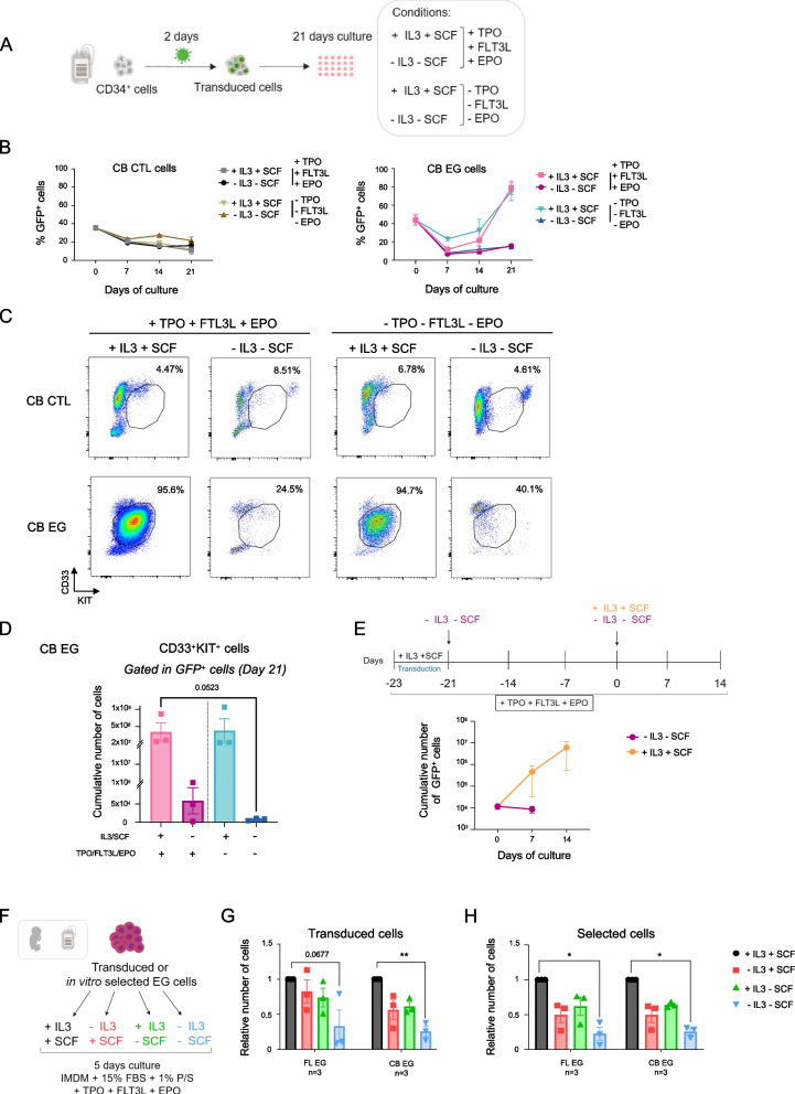 Results: We showed that ETO2::GLIS2 expression in primary human fetal CD34+ hematopoietic cells led to more efficient in vivo leukemia development than expression in post-natal cells. Moreover, cord blood-derived leukemogenesis has a major dependency on the presence of human cytokines, including IL3 and SCF. Single cell transcriptomes revealed that this cytokine environment controlled two ETO2::GLIS2-transformed states that were also observed in primary patient cells. Importantly, this cytokine sensitivity may be therapeutically-exploited as combined MEK and BCL2 inhibition showed higher efficiency than individual molecules to reduce leukemia progression in vivo.
