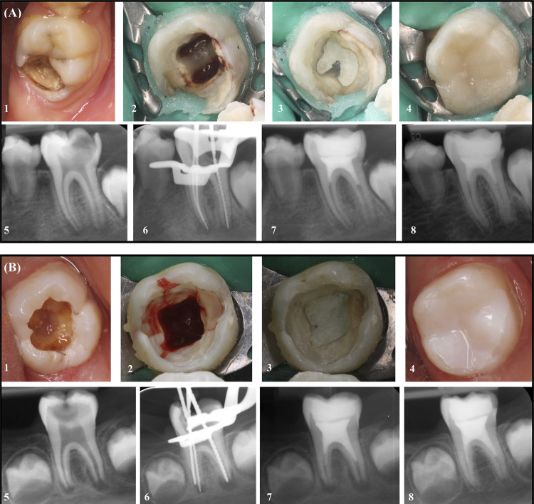 Objective: The primary goal is to evaluate the effects of two different intracanal medicaments, calcium hydroxide [Ca(OH)2] and double antibiotic paste (DAP), on radiographic outcomes during regenerative endodontic procedures (REP) of immature permanent mandibular first molars with symptomatic irreversible pulpitis and symptomatic apical periodontitis (SIP/SAP). Additionally, the secondary goal was to evaluate MMP-8 levels during REP using two different intracanal medicaments.
