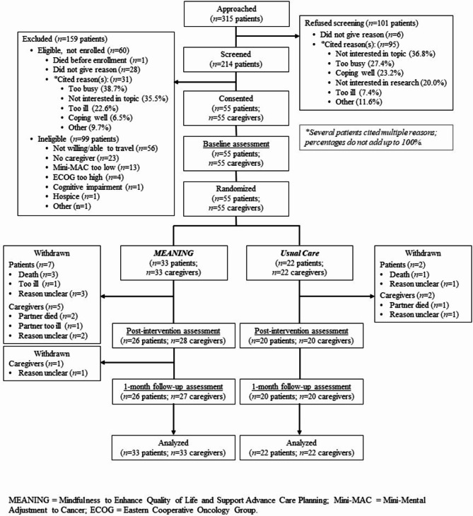Conclusions: A mindfulness-based intervention showed promise in improving quality-of-life and advance care planning outcomes in patients and caregivers coping with advanced cancer and warrants further testing.