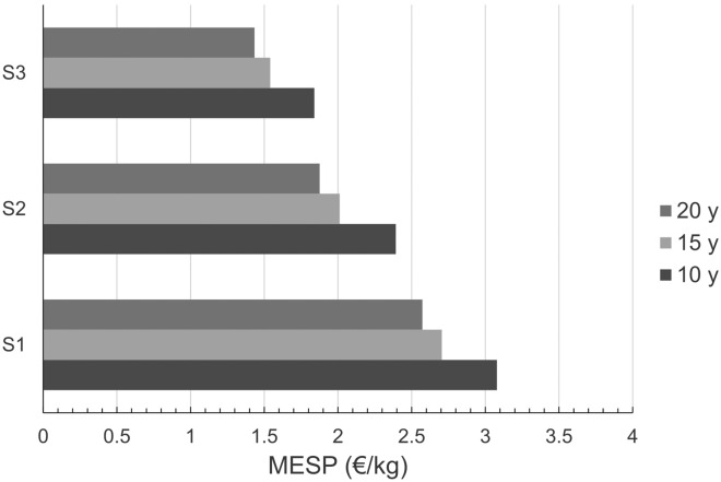 Conclusions: This work highlighted the importance of policy implementation in this kind of study, demonstrating how a gate fee approach applied to cheese-whey procurement positively impacted the final minimum selling price for ethanol across all scenarios. Additionally, considerations should be made about the implementation of the simulated process as a plug-in addition in to existing processes dealing with dairy products or handling multiple biomasses to produce ethanol.