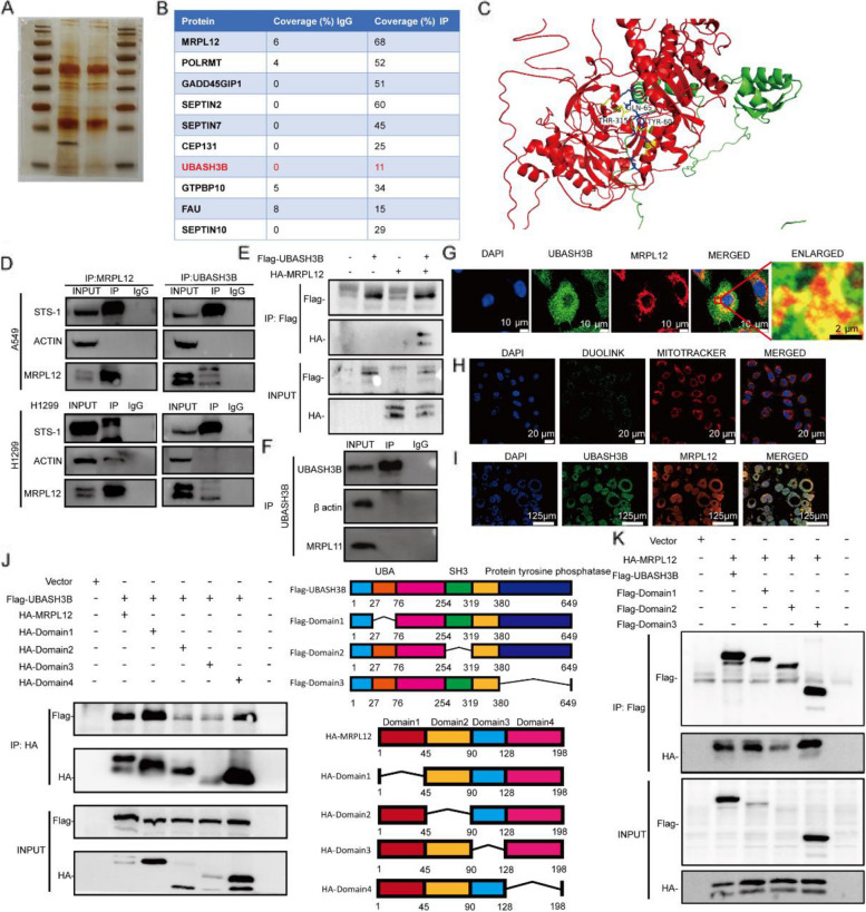 Results: MRPL12 was upregulated in human LUAD tissues, Tp53fl/fl;KrasG12D-driven LUAD tissues in mice, LUAD PDO, and LUAD cell lines, correlating with poor patient survival. Overexpression of MRPL12 significantly promoted LUAD tumorigenesis, metastasis, and PDO formation, while MRPL12 knockdown elicited the opposite phenotype. Additionally, MRPL12 deletion in a Tp53fl/fl;KrasG12D-driven mouse LUAD model conferred a notable survival advantage, delaying tumor onset and reducing malignant progression. Mechanistically, we discovered that MRPL12 promotes tumor progression by upregulating mitochondrial oxidative phosphorylation. Furthermore, we identified UBASH3B as a specific binder of MRPL12, dephosphorylating tyrosine 60 in MRPL12 (MRPL12 Y60) and inhibiting its oncogenic functions. The decrease in MRPL12 Y60 phosphorylation impeded the binding of MRPL12 to POLRMT, downregulating mitochondrial metabolism in LUAD cells. In-depth in vivo, in vitro, and organoid models validated the inhibitory effect of MRPL12 Y60 mutation on LUAD.