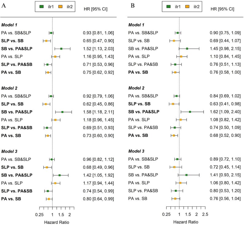Physical activity (PA), sedentary behavior (SB), and sleep are each individually associated with falls and fractures, but often are not examined simultaneously. Compositional data analysis examined the combined prospective associations between the proportion of time in PA, SB, and sleep relative to the remaining behaviors with recurrent falls (2+ falls in any yr), any fractures, and major osteoporotic fracture (MOF) from tri-annual questionnaires, with adjudication for fractures, in 2918 older men aged 78.9 ± 5.1 yr in the Osteoporotic Fractures in Men (MrOS) Study. Accelerometers were worn on the right tricep for seven consecutive 24-h periods and measured PA (>1.5 METs), SB (≤1.5 METs), and sleep. Generalized estimating equations evaluated associations with recurrent falls. Cox proportional hazards regression estimated any incident fracture and MOF risk separately. Over 4 yr of follow-up, 1025 (35.2%) experienced recurrent falls; over 10 ± 4 yr of follow-up, 669 (22.9%) experienced incident fractures, and 370 (12.7%) experienced a MOF. Higher proportions of PA relative to SB and sleep were associated with lower odds of recurrent falls [odds ratio (OR): 0.87, 95% CI: 0.76-0.99]. Higher proportions of SB relative to PA and sleep were associated with a higher odds of recurrent falls (OR: 1.38, 95% CI: 1.06-1.81) and a higher risk of any fracture [hazard ratio (HR): 1.42, 95% CI: 1.05-1.92]. Higher proportions of sleep relative to PA and SB were associated with a lower risk of fracture (HR: 0.74, 95% CI: 0.54-0.99). No associations of activity composition with MOF were observed. When accounting for the co-dependence of daily activities, higher proportions of SB relative to the proportion of PA and sleep were associated with higher odds of recurrent falls and fracture risk. Results suggest reducing SB (and increasing PA) may lower fall and fracture risk in older men, which could inform future interventions.