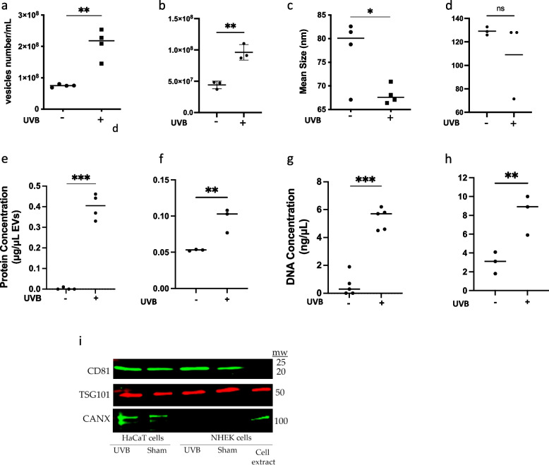 Conclusions: This data suggests EVs are mediators in a crosstalk that takes place between keratinocytes and their neighboring cells as a result of photodamage. Further studies exploring EVs induced by damaging doses of UVB, and their impact on other cells will provide insight into photodamage and may help develop targeted therapeutic approaches.