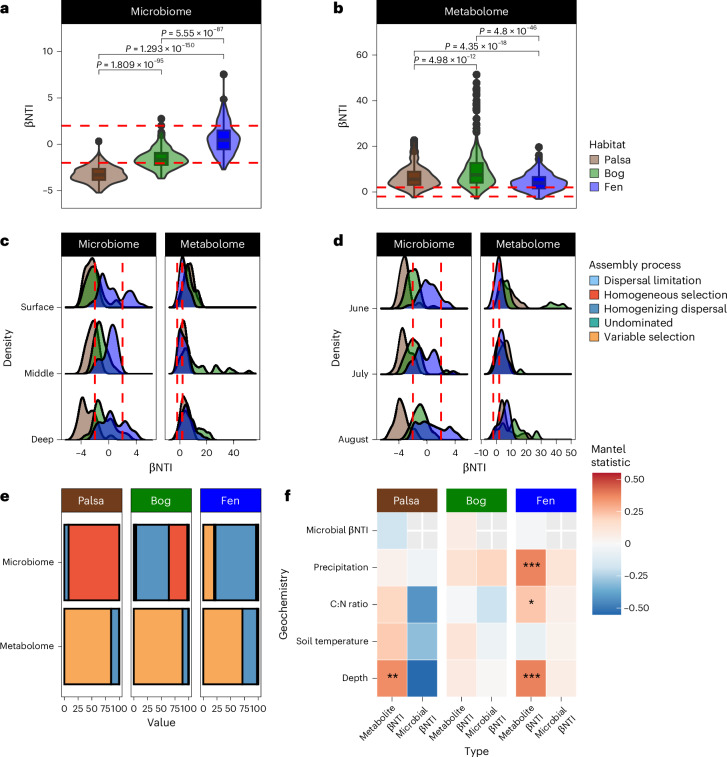 Interactions between microbiomes and metabolites play crucial roles in the environment, yet how these interactions drive greenhouse gas emissions during ecosystem changes remains unclear. Here we analysed microbial and metabolite composition across a permafrost thaw gradient in Stordalen Mire, Sweden, using paired genome-resolved metagenomics and high-resolution Fourier transform ion cyclotron resonance mass spectrometry guided by principles from community assembly theory to test whether microorganisms and metabolites show concordant responses to changing drivers. Our analysis revealed divergence between the inferred microbial versus metabolite assembly processes, suggesting distinct responses to the same selective pressures. This contradicts common assumptions in trait-based microbial models and highlights the limitations of measuring microbial community-level data alone. Furthermore, feature-scale analysis revealed connections between microbial taxa, metabolites and observed CO2 and CH4 porewater variations. Our study showcases insights gained by using feature-level data and microorganism-metabolite interactions to better understand metabolic processes that drive greenhouse gas emissions during ecosystem changes.