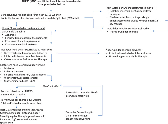 Results: The guidelines include all aspects associated with osteoporosis and osteoporotic fractures, such as secondary causes, prevention, diagnosis, estimation of the 10-year fracture risk using FRAX®, determination of Austria-specific FRAX®-based intervention thresholds, drug-based and non-drug-based treatment options and treatment monitoring. Recommendations for the office-based setting and decision makers and institutions in the Austrian healthcare system consider structured care models and options for osteoporosis-specific screening.