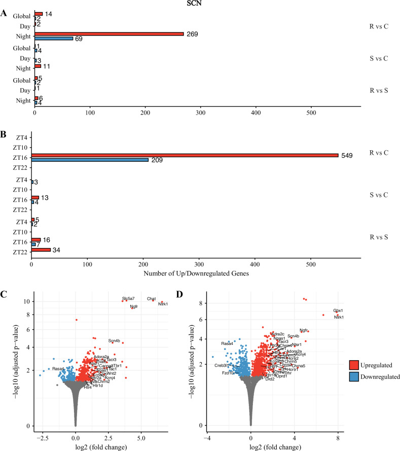 Nighttime-specific differential gene expression in suprachiasmatic nucleus and habenula is associated with resilience to chronic social stress
