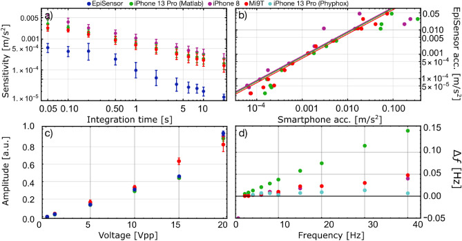 As seismic events continue to pose significant threats to urban infrastructure, leveraging smartphones equipped with accelerometers for real-time monitoring has gained prominence. To ascertain the reliability and sensitivity of smartphone-based measurements, an in-depth characterization of their response is essential. This article presents a thorough characterization of the performance of typical accelerometers installed on three distinct smartphone models. For this, a novel experimental apparatus has been developed to conduct a comparative study involving three different smartphones against a reference accelerometer. We determine each accelerometer's transfer functions for Fourier frequencies 0.1-40 Hz, evidencing main differences and demonstrating a higher sensitivity than expected. Possible implementation in future distributed networks of heterogeneous and synchronized sensors, capable of independently generating and validating timely alerts in particular seismic events, are also discussed.