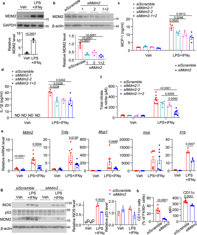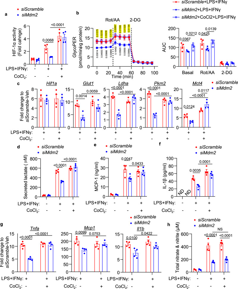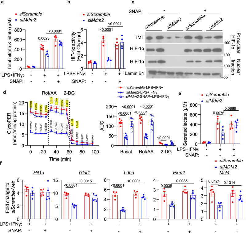 MDM2 induces pro-inflammatory and glycolytic responses in M1 macrophages by integrating iNOS-nitric oxide and HIF-1α pathways in mice