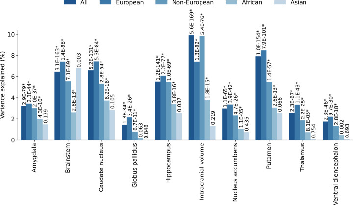 Genomic analysis of intracranial and subcortical brain volumes yields polygenic scores accounting for variation across ancestries
