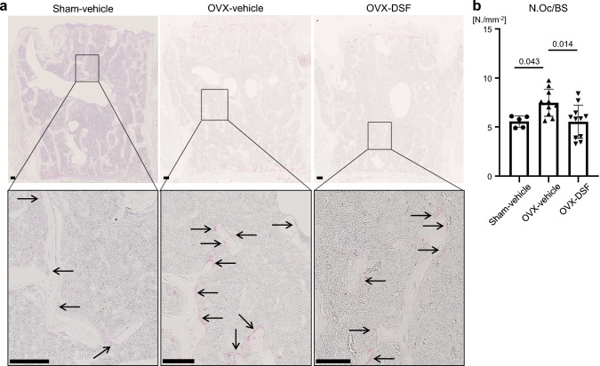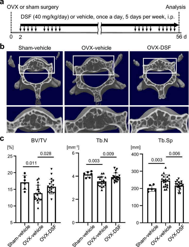 Conclusion: This study demonstrates that DSF could be a candidate for osteoporosis therapies because it suppresses osteoclastogenesis from an early stage in vivo.