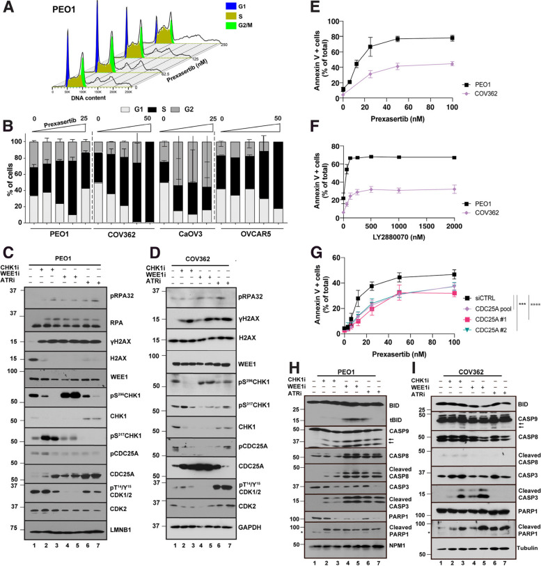 Keywords: ATR inhibitor; Apoptosis; BH3 proteins; CHK1 inhibitor; High grade serous ovarian cancer; Replication stress; WEE1 inhibitor.