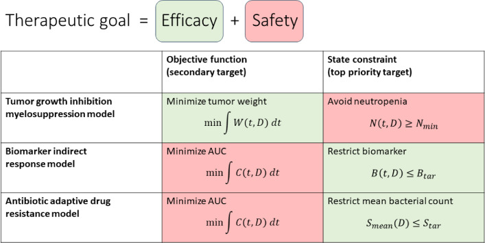 Keywords: Dose optimization; Efficacy; Optimal control; Optimal dosing; Safety; State constraints.