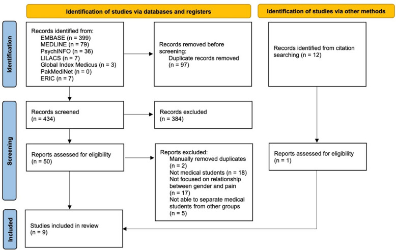 Methods: Embase, MEDLINE, PsychINFO, LILACS, Global Index Medicus, PakMediNet and ERIC were searched for articles relating to medical student perceptions of gender and pain, with no geographical or language limitations. Quality was assessed using the Medical Education Research Study Quality Index and the Critical Appraisal Skills Programme checklist.