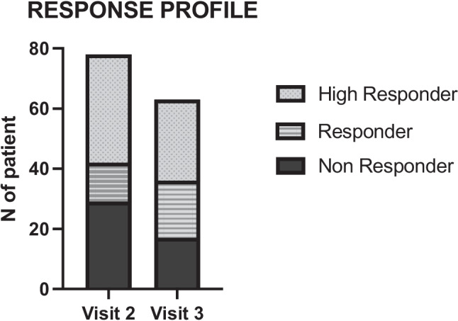 Results: The study included 92 patients. The daily dose of methadone was 3 [3-6] mg at baseline, 9 [4-10] mg on day 7 and 10 [6-15] mg on day 14. The NRS pain ratings significantly decreased from 7 [6-8] at baseline to 5 [3-6] on visit 2 (p < .0001) and 4 [3-6] on visit 3 (p < .0001). Similarly, the VRS pain ratings decreased from 3 [3-3] at baseline to 2 [2-3] on visit 2 (p = 0.026) and 2 [1-3] (p < 0.001) on visit 3. At Visits 1 and 2, half of the patients were considered Responders. Of those responders, 73.5% were High-Responders at Visit 1 and 58.7% were High-Responders at Visit 2. No adverse events related to the risk of QT prolongation, overdose, or drug interactions were reported.