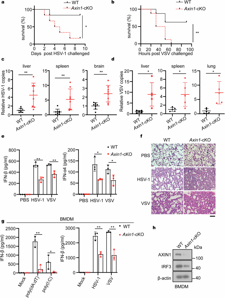 AXIN1 boosts antiviral response through IRF3 stabilization and induced phase separation