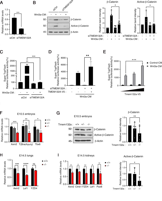 The Wnt/β-catenin signaling pathway is crucial for embryonic development and adult tissue homeostasis. Dysregulation of Wnt signaling is linked to various developmental anomalies and diseases, notably cancer. Although numerous regulators of the Wnt signaling pathway have been identified, their precise function during mouse embryo development remains unclear. Here, we revealed that TMEM132A is a crucial regulator of canonical Wnt/β-catenin signaling in mouse development. Mouse embryos lacking Tmem132a displayed a range of malformations, including open spina bifida, caudal truncation, syndactyly, and renal defects, similar to the phenotypes of Wnt/β-catenin mutants. Tmem132a knockdown in cultured cells suppressed canonical Wnt/β-catenin signaling. In developing mice, loss of Tmem132a also led to diminished Wnt/β-catenin signaling. Mechanistically, we showed that TMEM132A interacts with the Wnt co-receptor LRP6, thereby stabilizing it and preventing its lysosomal degradation. These findings shed light on a novel role for TMEM132A in regulating LRP6 stability and canonical Wnt/β-catenin signaling during mouse embryo development. This study provides valuable insights into the molecular intricacies of the Wnt signaling pathway. Further research may deepen our understanding of Wnt pathway regulation and offer its potential therapeutic applications.