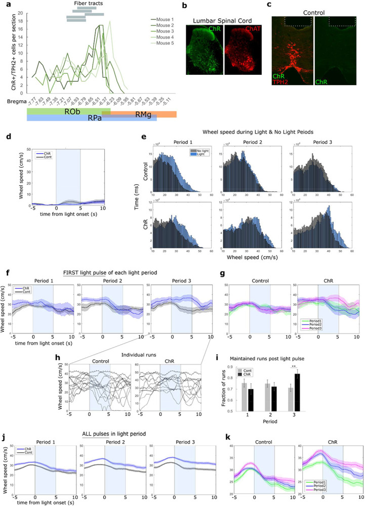 Potentiation of active locomotor state by spinal-projecting serotonergic neurons