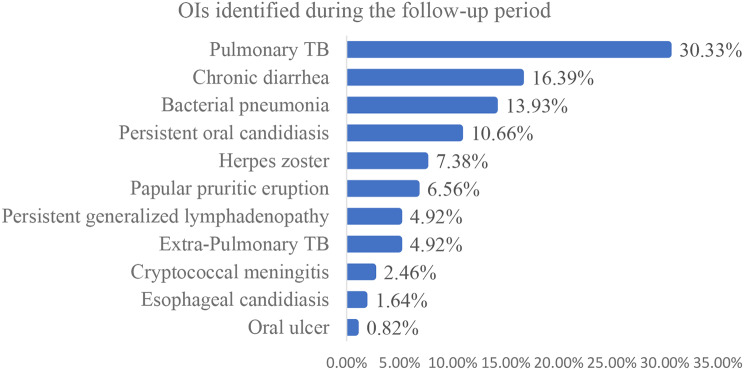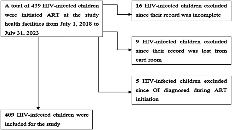 Conclusion and recommendations: The incidence of OIs was high in the study area. Hence, health facilities need to regularly monitor hemoglobin, enhance ART adherence, provide OI prophylaxis for at-risk children, reinforce PMTCT programs for early OI detection and management, and encourage timely and age-appropriate HIV status disclosure. Caregivers of HIV-infected children are also required to oversee and assist their children in adhering to the ART.