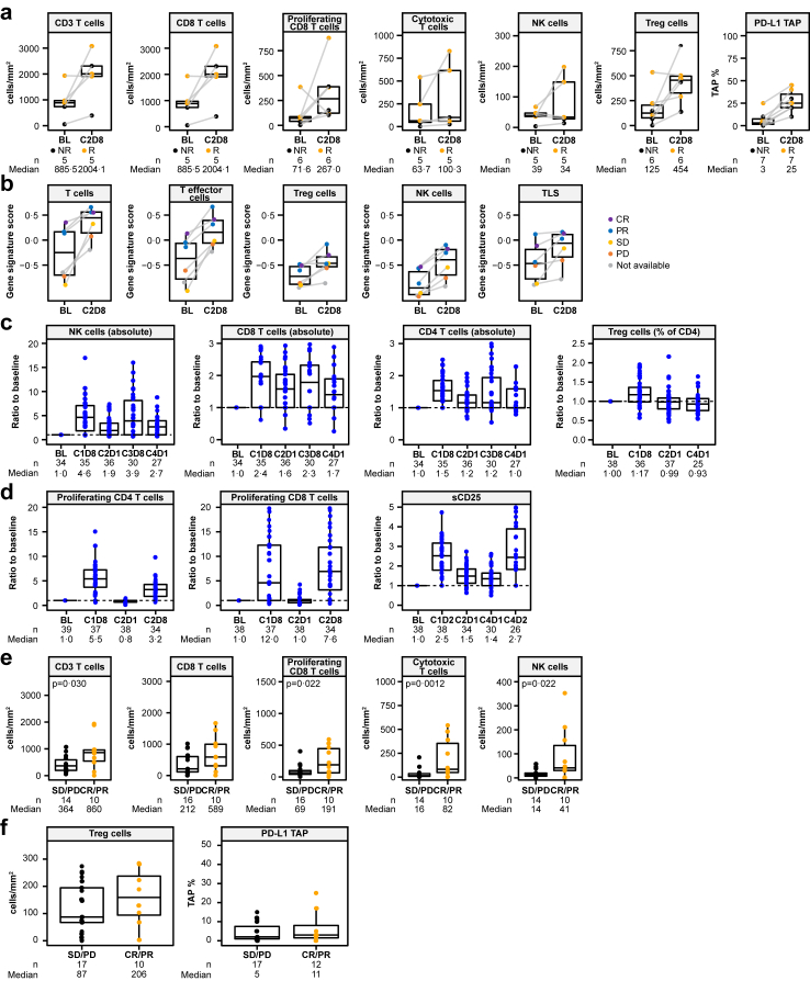 Findings: Forty-eight patients were enrolled (Q3W: n = 47; QW/Q2W: n = 1). Among 45 response evaluable patients, objective responses occurred in 12 patients (27%; CI 16.0-41.0), including 3 complete and 9 partial responses. Responses occurred in 6/19 PD-L1 positive patients (32%; 95% CI 15.4-54.0) and 5/24 PD-L1 negative patients (21%; 95% CI 9.2-35.6). Median duration of response was 13.3 months (95% CI 7.6-NE). Median progression-free survival was 3.7 months (95% CI 3.3-9.0). Adverse events (AEs) were consistent with the known safety profile of each drug. AEs leading to withdrawal of either agent occurred in 6 patients (13%). Pronounced expansion and activation of natural killer and CD8 T cells in peripheral blood and increased tumour infiltration and inflammation were observed.