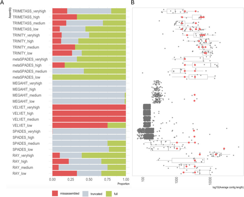 Conclusions: Our study shows that metaSPAdes and Trinity would be the preferable tools in terms of accuracy to recover correct genomic contexts around ARGs in metagenomic samples characterized by uneven coverages. Overall, the inability of assemblers to reconstruct long ARG-containing contigs has impacts on ARG quantification, suggesting that directly mapping reads to an ARG database should be performed as a complementary strategy to get accurate ARG abundance and diversity measures.