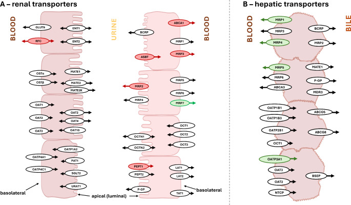 Results: Our results show significant changes in the expression of genes involved in human transporters, both renal and hepatic. In liver tissue, we found that ABCC4 was up-regulated in overweight/obese subjects. In kidney tissue, up-regulation was only observed for ABCC10, while the other differentially expressed genes were down-regulated: ABCA1, ABCC3, and SLC15A1.