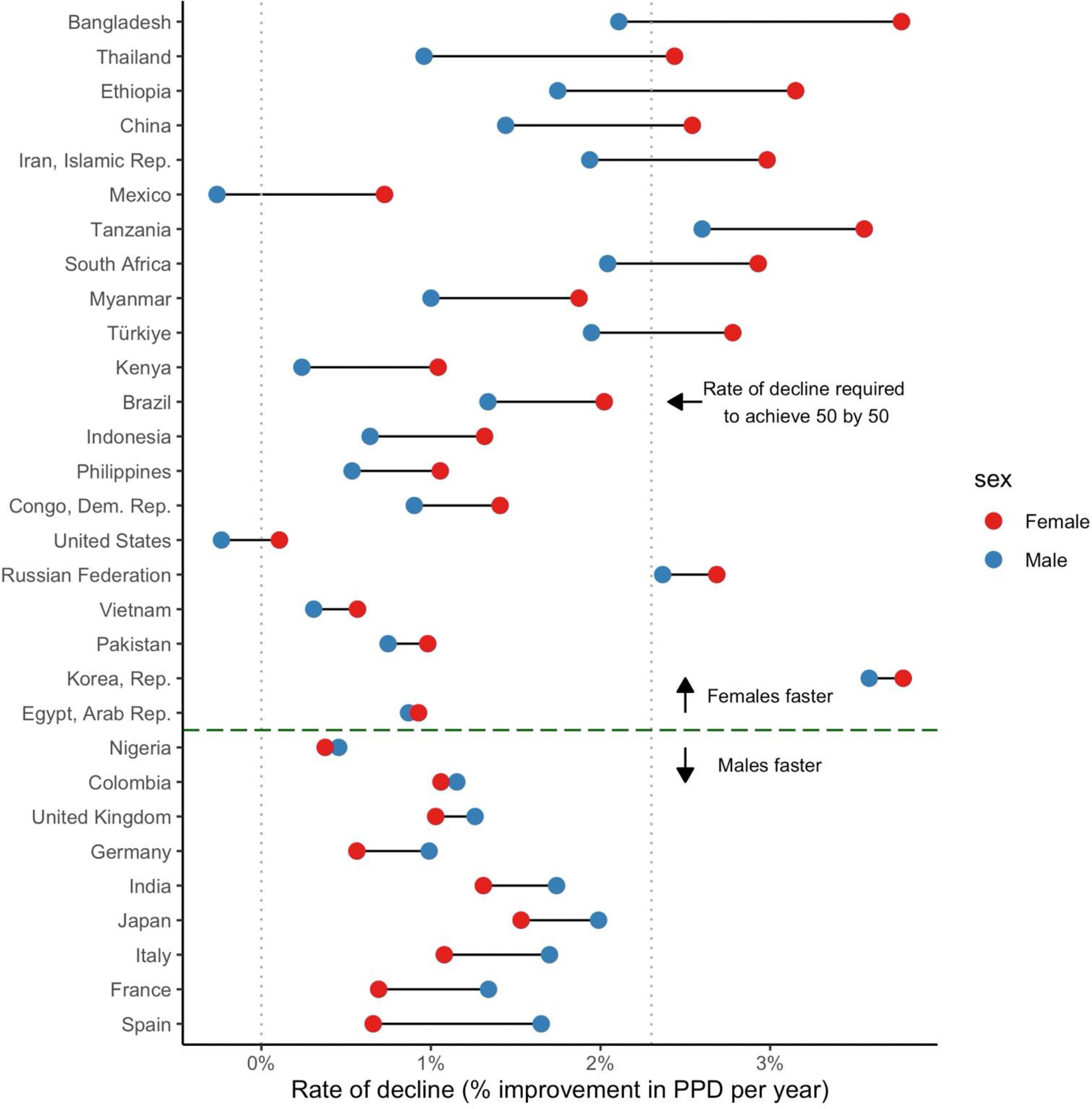 Historical experience and continued scientific advance indicate that this is a feasible aspiration. Eight of the 30 most populous countries reduced their PPD over the last decade at a rate that would halve PPD before 2050, including countries as diverse as Bangladesh, Iran, Tanzania, and Turkey. These focused gains can be achieved relatively early on the pathway to full universal health coverage (UHC).