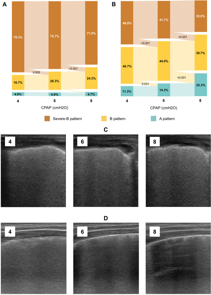 Conclusions: Increasing CPAP from 4 to 8 cmH2O improves ultrasound-assessed lung aeration and oxygenation in RDS and TTN. The absolute improvements are small when CPAP is beyond 6 cmH2O or for RDS patients.
