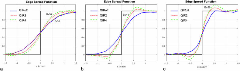 Materials and methods: Twenty otherwise healthy subjects (16 females; median age 52 years) with atypical chest pain, low risk of coronary artery disease (CAD), and without CAD in photon-counting detector CCTA were included. Images were reconstructed with a quantitative smooth (Qr36) and three vascular kernels of increasing sharpness levels (Bv36, Bv44, Bv56). Quantum iterative reconstruction (QIR) was either switched-off (QIRoff) or was used with strength levels 2 and 4. The fat-attenuation-index (FAI) of the PCAT surrounding the right coronary artery was calculated in each dataset. Histograms of FAI measurements were created. Intra- and inter-reader agreements were determined. A CT edge phantom was used to determine the edge spread function (ESF) for the same datasets.