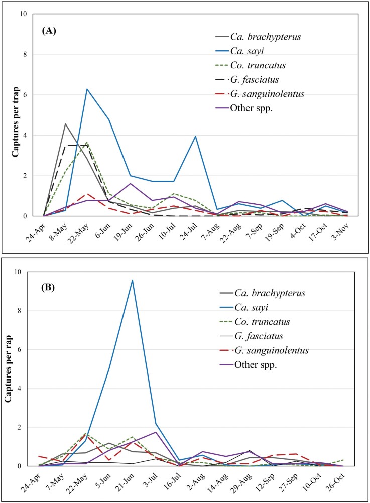Seasonal activity and phoresy rates of Nitidulid beetles (Coleoptera: Nitidulidae) captured in stands with oak wilt infections in northern Michigan, USA