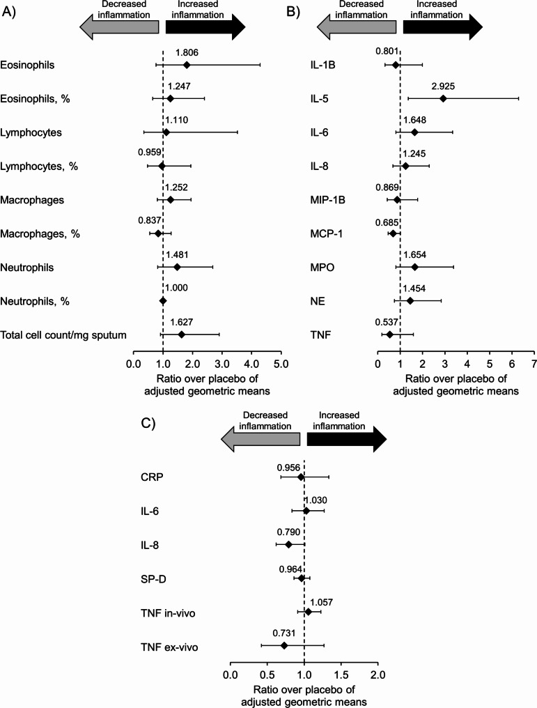 Conclusions: These data, together with those from other PI3K inhibitors, suggest that PI3Kδ is not a suitable pathway for the management of COPD, as the achieved target engagement did not translate into any pharmacodynamic anti-inflammatory effect.