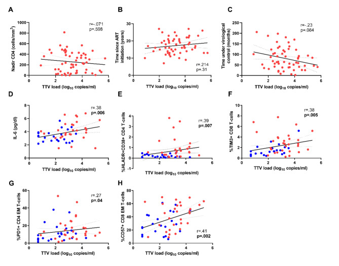 Torque teno virus (TTV) viral load (VL), a component of the human virome, increases during immune suppression or dysregulation. This study aimed to explore TTV VL in youths living with vertically acquired HIV (YWVH) and its potential as an immunovirological marker. We performed an observational, retrospective study involving YWVH under antiretroviral treatment (ART) from the Spanish Cohort of HIV-infected children, adolescents, and vertically HIV-infected patients transferred to Adult Units (CoRISpe-FARO), compared to HIV-negative healthy donors (HD). Plasma TTV VL was assessed by qPCR. T-cell phenotype was analysed on cryopreserved peripheral blood mononuclear cells by flow cytometry. Correlations with baseline CD4 and CD8 and long-term virological evolution were examined. A total of 57 YWVH were compared with 23 HD. YWVH had a median CD4 T-cells of 736 cells/mm3 [IQR: 574-906], a median of 17 years [IQR: 14-20.5] since ART initiation, and 65 months [IQR: 39-116] under HIV-RNA virological control. TTV VL was higher among YWVH and in males compared with females (p < 0.05). Among YWVH, TTV VL correlated with CD4 and CD8 counts and the CD4/CD8 ratio (p = 0.002; r = - 0.39, p = 0.037; r = 0.277, p = 0.005; r = - 0.37 respectively). TTV VL correlated with activation expression markers (HLA-DR+/CD38+) on CD4 (p = 0.007, r = 0.39) and the soluble proinflammatory cytokine IL-6 (p = 0.006, r = 0.38).