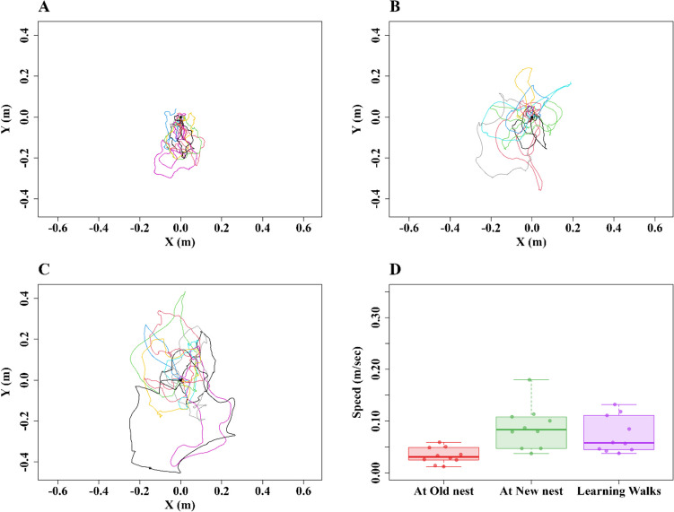 Keywords: Exploratory walks; Nest relocation; Red honey ants; Relearning walks; Transportation.