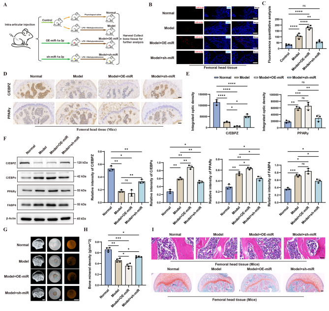 Methods: We employed in vivo mouse models and clinical samples from GA-ONFH patients to investigate the interactions between M1 macrophages and BMSCs. Immunofluorescence staining was used to assess the colocalization of M1 macrophages and BMSCs. Flow cytometry and transcriptomic analysis were performed to evaluate the impact of exosomes derived from normal (n-M1) and glucocorticoid-stimulated M1 macrophages (GC-M1) on BMSC differentiation. Additionally, miR-1a-3p expression was altered in vitro and in vivo to assess its role in regulating adipogenic differentiation.