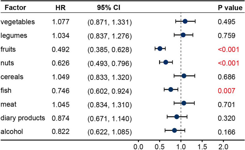 Results: During a median follow-up of 9.0 years, 445 (3.5%) subjects developed diabetes. Overall, there was an inverse association between the MDA score and new-onset diabetes (per score increment, HR 0.83, 95% CI 0.76-0.90). Moreover, age, sex, BMI, and energy intake significantly modified the association between the MDA score and the risk of new-onset diabetes (all P interactions < 0.05). Greater fruit, fish, and nut intake was significantly associated with a lower risk of new-onset diabetes.