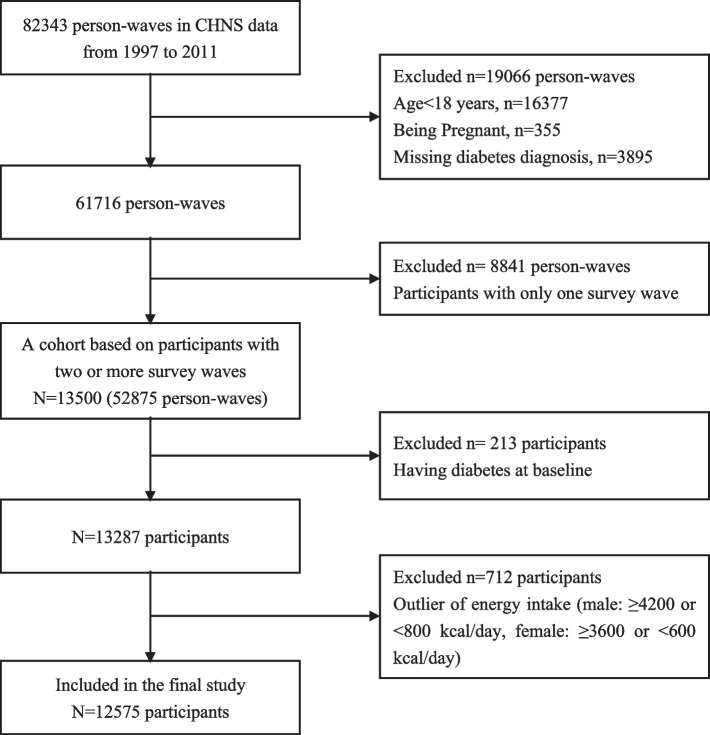 Methods: In this study, we included 12,575 participants without diabetes at baseline from the China Health and Nutrition Survey (CHNS). Dietary intake was measured by three consecutive 24-h dietary recalls. The Mediterranean diet adherence (MDA) was measured by a score scale that included nine components of vegetables, legumes, fruits, nuts, cereals, fish, red meat, dairy products, and alcohol. New-onset diabetes was defined as self-reported physician-diagnosed diabetes during the follow-up.