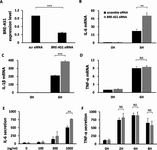 Long non-coding RNAs (lncRNAs) have emerged as pivotal regulators in numerous biological processes, including macrophage-mediated inflammatory responses, which play a critical role in the progress of diverse diseases. This study focuses on the regulatory function of lncRNA brain and reproductive organ-expressed protein (BRE) antisense RNA 1 (BRE-AS1) in modulating the inflammatory activation of monocytes/macrophages. Employing the THP-1 cell line as a model, we demonstrate that lipopolysaccharide (LPS) treatment significantly upregulates BRE-AS1 expression. Notably, specific knockdown of BRE-AS1 via siRNA transfection enhances LPS-induced expression of interleukin (IL)-6 and IL-1β, while not affecting tumor necrosis factor (TNF)-α levels. This selective augmentation of pro-inflammatory cytokine production coincides with increased phosphorylation of Janus kinase (JAK)2 and signal transducer and activator of transcription (STAT)3. Furthermore, BRE-AS1 suppression results in the downregulation of suppressor of cytokine signaling (SOCS)3, an established inhibitor of the JAK2/STAT3 pathway. Bioinformatics analysis identified binding sites for miR-30b-5p on both BRE-AS1 and SOCS3 mRNA. Intervention with a miR-30b-5p inhibitor and a synthetic RNA fragment that represents the miR-30b-5p binding site on BRE-AS1 attenuates the pro-inflammatory effects of BRE-AS1 knockdown. Conversely, a miR-30b-5p mimic replicated the BRE-AS1 attenuation outcomes. Our findings elucidate the role of lncRNA BRE-AS1 in modulating inflammatory activation in THP-1 cells via the miR-30b-5p/SOCS3/JAK2/STAT3 signaling pathway, proposing that manipulation of macrophage BRE-AS1 activity may offer a novel therapeutic avenue in diseases characterized by macrophage-driven pathogenesis.