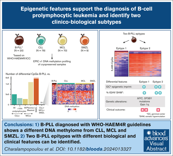 Epigenetic features support the diagnosis of B-cell prolymphocytic leukemia and identify 2 clinicobiological subtypes