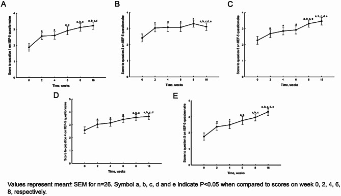 Conclusions: Our findings indicate that intracavernous injections of PL substantially enhance erectile function, as evidenced by improvements in EHS, IIEF-5, and the RI of penile Doppler ultrasound, without hemorrhagic events or other adverse reactions apart from temporary pain at the injection site during the 16-week follow-up period. These encouraging results suggest that PL injections are a safe and effective treatment modality for patients with moderate ED, potentially providing a less invasive and more physiologically friendly alternative to current ED management strategies.