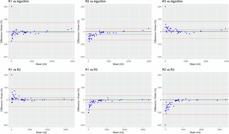 Conclusion: The algorithm's performance fell within the range of inter-rater variability, but large TKV and TCV were underestimated.