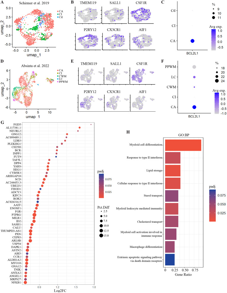 Conclusion: These results support the hypothesis that microglia and macrophages exhibit transcriptional features of cellular senescence in EAE and MS, and that microglia expressing Bcl2l1 demonstrate a proinflammatory signature that may exacerbate inflammation resulting in negative outcomes in neuroinflammatory disease. Depleting microglia and macrophages using a senolytic results in robust improvement in EAE disease severity, including across measures of neurodegeneration, inflammation, and demyelination, and may therefore represent a novel strategy to address disease progression in multiple sclerosis.