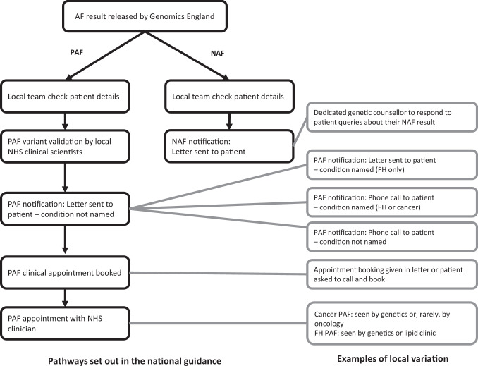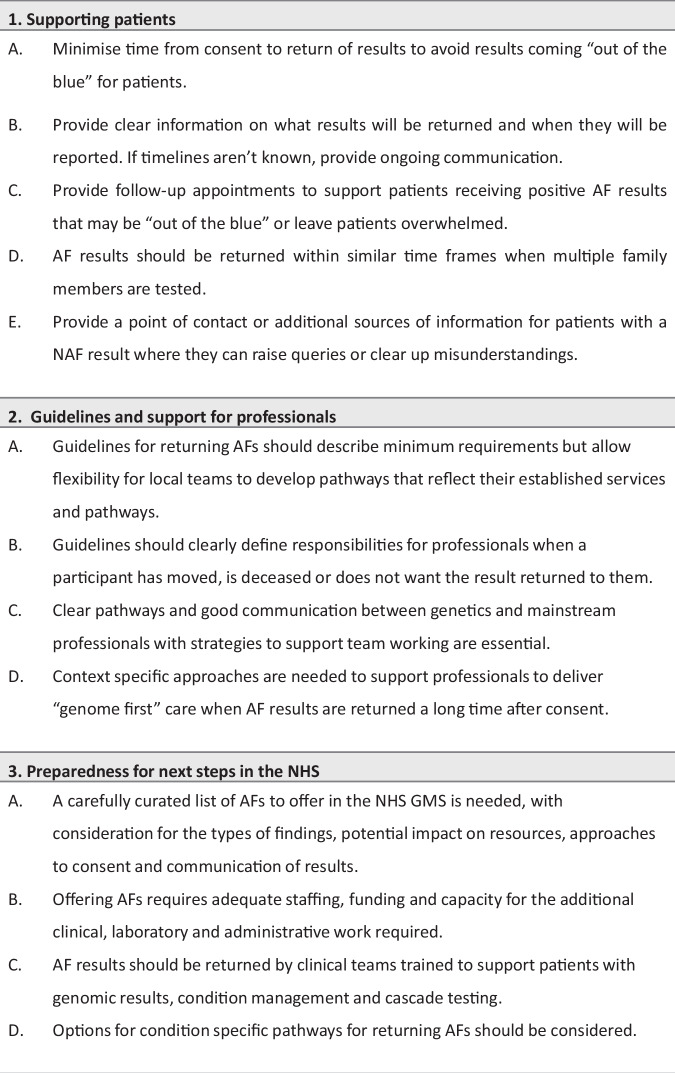 Participants in the 100,000 Genomes Project (100kGP) could consent to receive additional finding (AF) results, individual variants relating to genes associated with susceptibility to cancer and familial hypercholesterolemia (FH). In the study reported here, qualitative interviews were used to explore the experiences of National Health Service (NHS) professionals from across England who were tasked with returning over 80,000 "no AF" results and 700 positive AF results to 100kGP participants. Interviews were conducted with 45 professionals from a range of backgrounds, including Genetic Counsellors, Clinical Geneticists, FH Clinical Nurse Specialists and Clinical Scientists. Interviews were analysed using a codebook thematic analysis approach. Returning AF results has been a significant endeavour, with challenges for pathways, administrative processes and clinical and laboratory time when the capacity of NHS services is already stretched. Professionals discussed going "above and beyond" to prioritise patient care through pathway design, additional clinics, overtime, longer appointments and provision of follow-up appointments. Professionals also described facing practical and emotional challenges when returning AFs. Benefits for patients from receiving AFs in the 100kGP were highlighted and professionals were generally positive about offering clinically actionable AFs within routine NHS clinical care. Professionals were, however, cautious around the implementation of AFs into routine care and felt more research and discussion was needed to determine which AFs to offer, approaches to consent and communication of results, costs and the potential strain on NHS capacity and resources. Further consultation is required with careful review of pathways and resources before offering AFs in clinical practice.