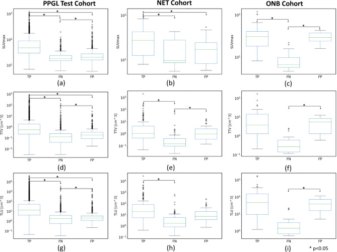 Results: The nnUNet AI model achieved an average 5-fold validation dice similarity coefficient of 0.84 at the scan level. The model achieved dice similarity coefficients (DSC) of 0.88, 0.6, and 0.67 at the scan level, the sensitivity of 86%, 61.13%, and 61.64%, and a positive predictive value of 89%, 74%, and 86.54% at the lesion level for the PPGL test, NET and ONB cohorts, respectively. For PPGL cohorts, smaller lesions with low uptake were missed by the AI model (p < 0.001). Anatomical region-based failure analysis showed most of the false negative and false positive lesions within the liver for all the cohorts, mainly due to the high physiologic liver background activity and image noise on 68Ga- DOTATATE PET scans.